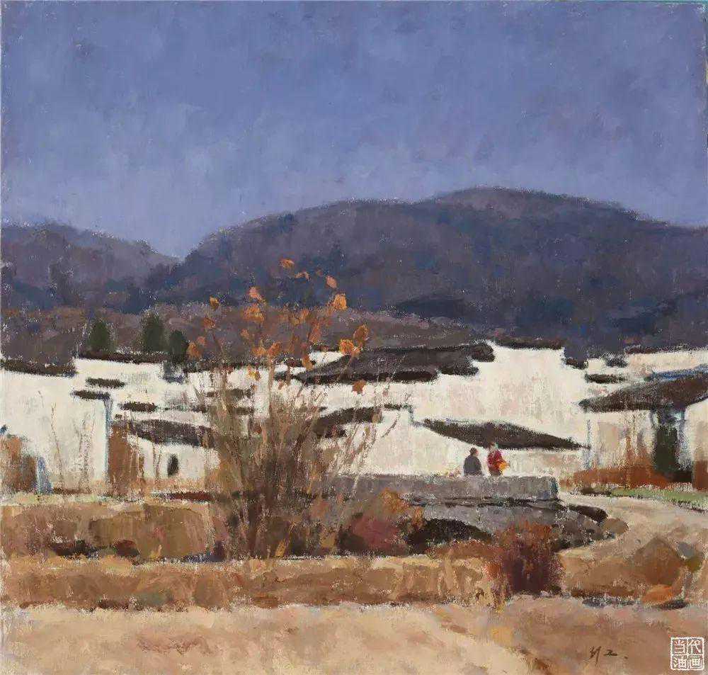 读他近期的作品,我还有一个突出的感觉,那就是他对当今画界讨论的热门话题“意象油画”有明确的态度。他从民族传统绘画中吸收营养,但不是简单地把国画的造型用于油画创作,而是着眼于领会其写意精神,即在保持油画艺术特质的情况下,强化其意象性。也就是说,他不是弱化或放弃块面造型,没有使油画技巧纤细化,而是在块面中穿插或长或短、或明或暗的线,赋予更强烈的艺术意味和由笔触、肌理和色彩构成的情趣,从而大大增强了绘画语言的感情因素,使画面更具艺术感染力,更耐人寻味。