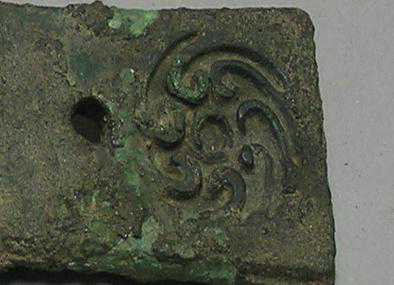 漩涡纹戈内两面各有一纹饰,一面为漩涡纹,与郑州二里岗出土的陶文接近。一面为“回”字向四面各出一箭头样的纹饰,郑州二里岗文化四期出土的戈内部也有相近的纹饰。由此可推断,人民公园期与商前期二里岗文化是有裔承关系的。但从这件戈的形制看,与二里岗文化的戈还是有一定差别的,而与安阳殷墟二期的同类戈形制相似。因此漩涡纹戈虽然出土于郑州,但从文化类型上看,却属于安阳商代后期的殷墟文化。