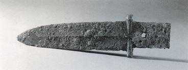 漩涡纹戈,商代后期青铜兵器,郑州人民公园出土,通长20.3厘米,宽7.2厘米。
