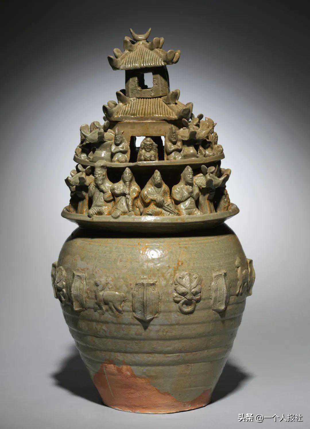 是一件非常精美的随葬器。底部的盘形模拟水池,栖息着水禽与走兽。其中的瞭望塔内有活泼的随从,猎人,音乐家,舞者和家畜,生动地描绘了人间的世俗享受。