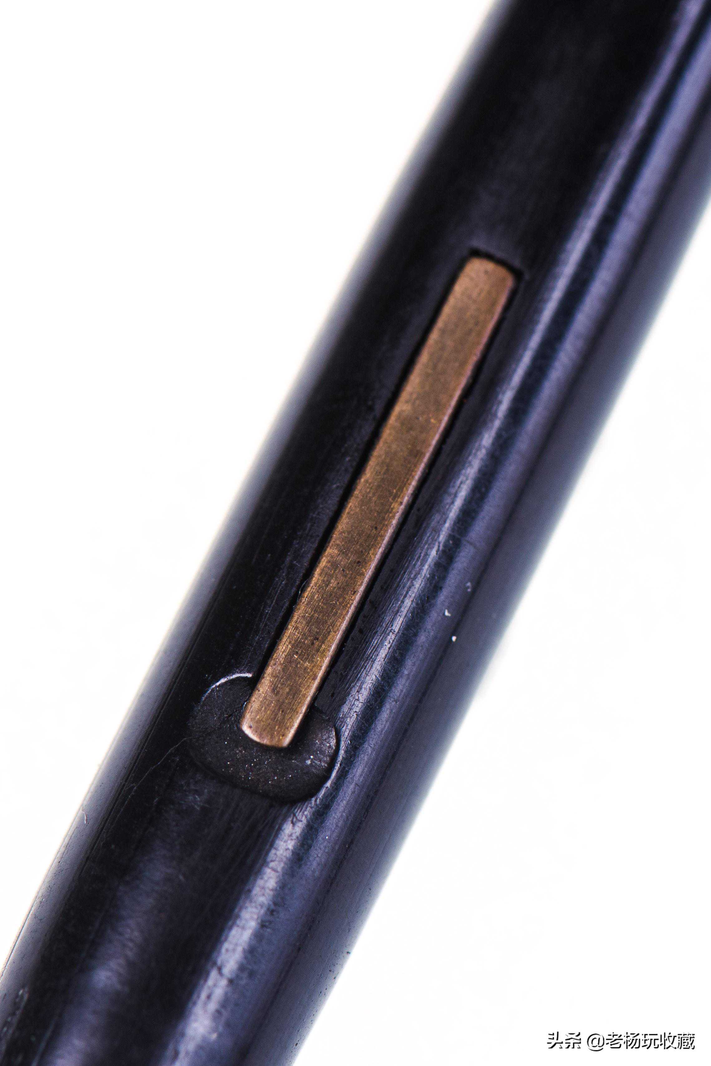 这款派克真空(ParkerVacumatic)采用赛璐珞材料,也就是人造塑料。箭头笔尖纹,雕刻古朴。这只笔,已经不能正常上墨了。不知道是否可以修好。据资料了解,这款笔,采用了派克的真空上墨技术。但是具体这种上墨技术,老杨就未有甚解。